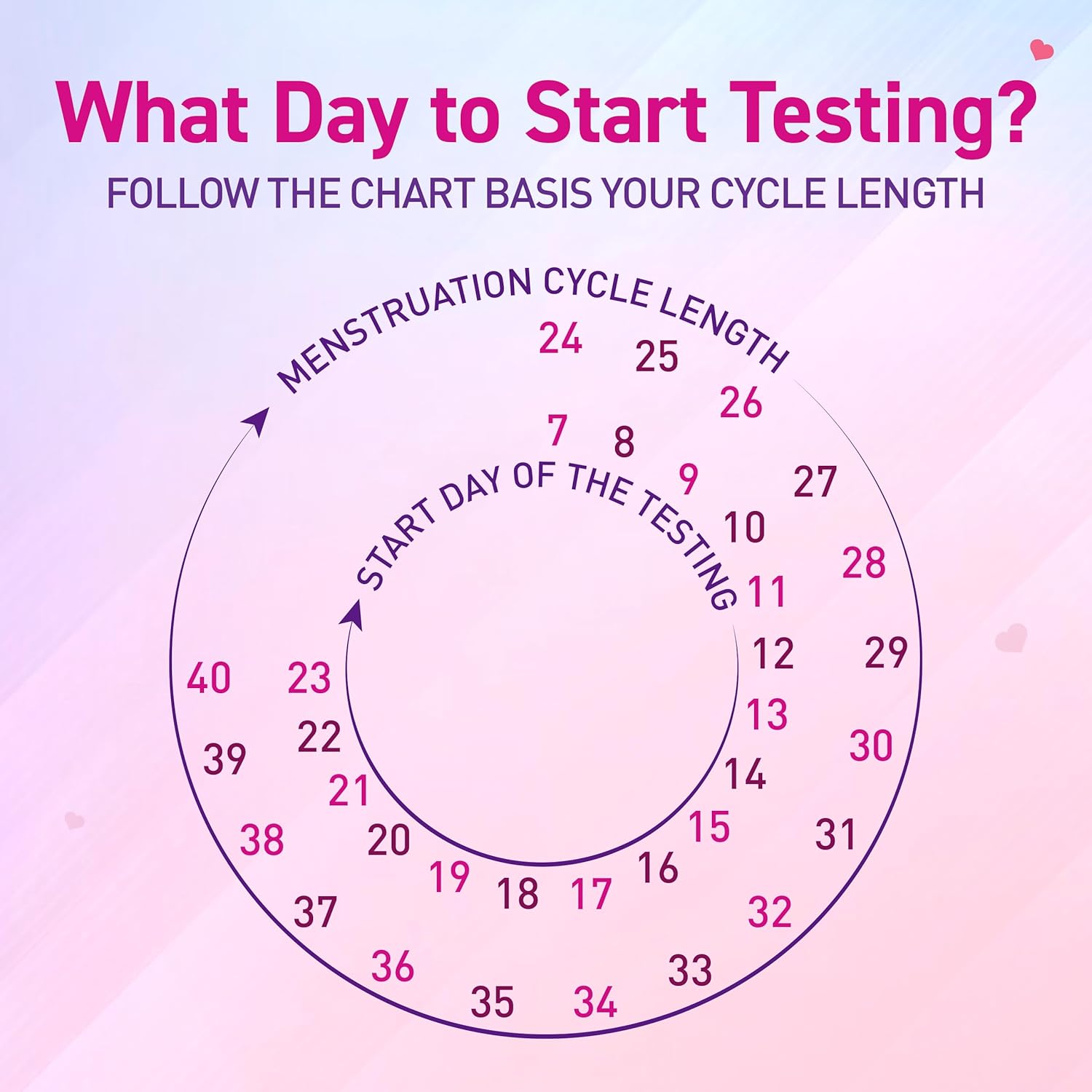 TESTING PROCESS: Testing start day depends on your menstrual cycle length. For a 28-day cycle, testing starts on the 11th day.