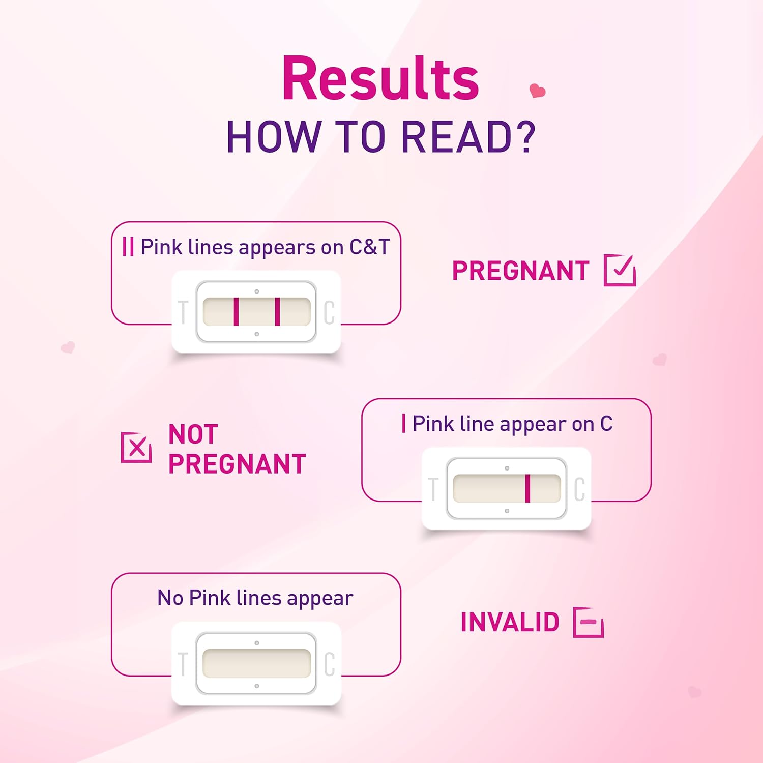CLEAR RESULTS: If two pink lines appear on C & T, you are pregnant. If only one pink line appears on C, you are not pregnant, and no lines indicate an invalid result